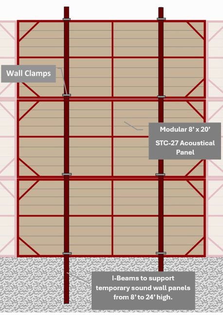 Our temporary sound walls are made in the U.S. and can be rented from NMS. Our temporary sound walls can be installed at the perimeter of any site and effectively control unwanted sound. The materials we use are high quality, durable, and fire resistant.